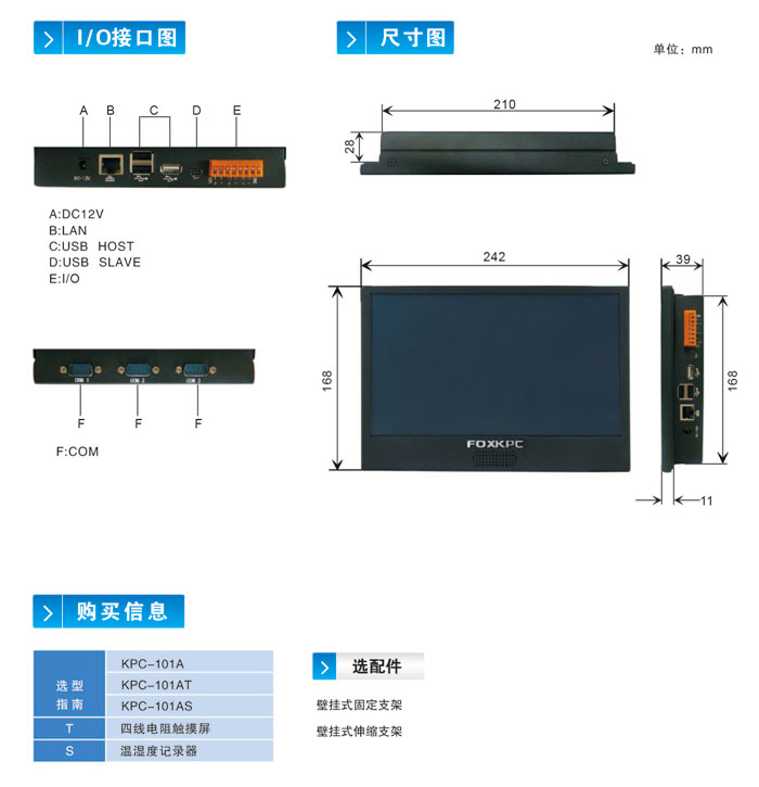 富士康工业平板电脑KPC-101AT 10.1寸工业一体化工控机整机规格介绍: