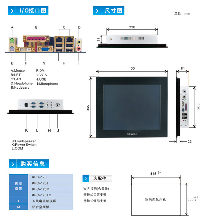 3、可以选配机身外观是钣金的,钣金材质的型号为:KPC-170H;KPC-170HL 170HT 170HLT