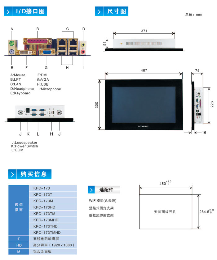 3、可以选配机身外观是钣金的,钣金材质的型号为:KPC-173H/ KPC-173HL/ KPC-173HLT /KPC-173HT