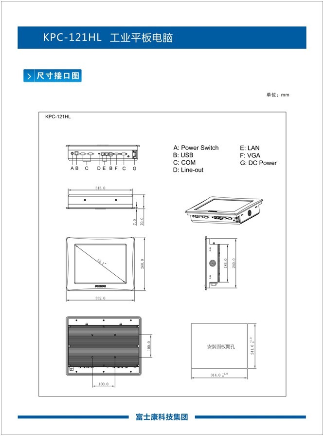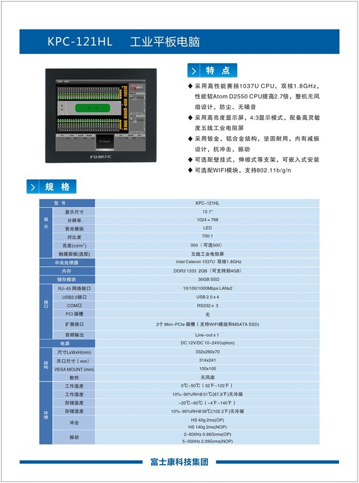 富士康12.1寸工业平板电脑kpc-121HLT更多产品特点汇总: