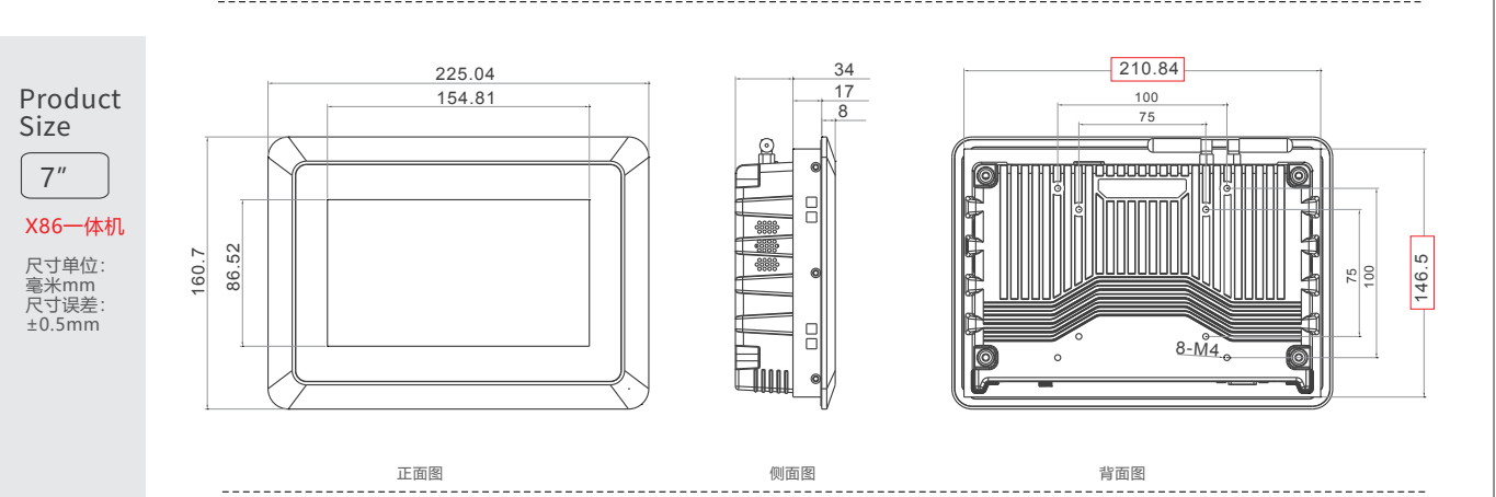 7寸工业平板电脑尺寸_工业触控一体机_工业一体机参数及尺寸图: