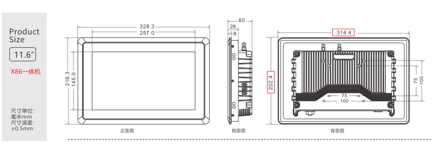 伴随着工业4.0信息自动化不断发展,工业平板一体机电脑应用越来越广。工业平板一体机电脑不仅具备普通商用电脑功能,还拥有工业防护等级,可以适应各种各样恶劣环境,市场需求不止局限工业领域, 如今工业触摸电脑已涉及到交通、建筑、零售、医疗、物流、电力等行业。为此研维为大家推荐一款采用全铝合金结构11.6寸工业三防平板电脑可满足多种安装方式,电容式触摸屏操作简单;整机散热效果好;工业触摸电脑机身配备丰富的输入输出接口;工业平板一体机能够24小时持续运作。11.6寸工业平板电脑参数: