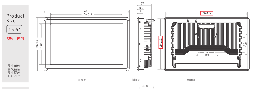 15.6寸工业平板电脑尺寸_工业一体机厂家_工业一体机长宽高_苏州。工业一体机电脑也是工控机的一种,工业一体机电脑是由工控机组成的,在显示上增加一个显示器与触摸屏。工控机使用环境有些非常恶劣,所以设备性能需要稳定,根据具体使用需求研维为大家推荐15.6寸工业平板电脑;机器接口丰富有RJ45 以太网、DC 端口、USB、支持 HDMIRS232、RS485/422等接口。15.6寸工业平板电脑整机用料注重可靠性、环境适应性,实时性、可扩展性、EMC兼容性。能根据客户需求升级酷睿I3/I5/I7处理器。15.6寸工业三防平板电脑尺寸_工业一体机厂家_工业一体机硬件配置参数: