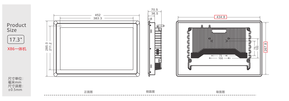 17.3寸工业平板电脑尺寸_工业电脑_工业触屏平板电脑长宽高_山东。 如今随着工业智能化不断发展,普通工业平板电脑已经不能满足发展需求了,现在人们对机器有了越来越多的定制化要求,工业触屏平板电脑是应用在工业设备上一种触摸计算机,操作简单反应快,节省空间,工业触屏平板电脑能在工业自动化中发挥重要作用。为大家推荐一款赛扬 J1900 四核处理器17.3寸工业平板电脑,大容量数据查询更好的满足客户个性化需求,定制工业平板电脑参数时,(如:按需定制机接口、内存按需升级、需升级酷睿I3/I5/I7处理器)通过与客户间沟通,为客户提供更实用的工业一体机产品。如果您有工业平板电脑定制需求,可以联系我们。 研维17.3寸工业平板电脑产品尺寸图:
