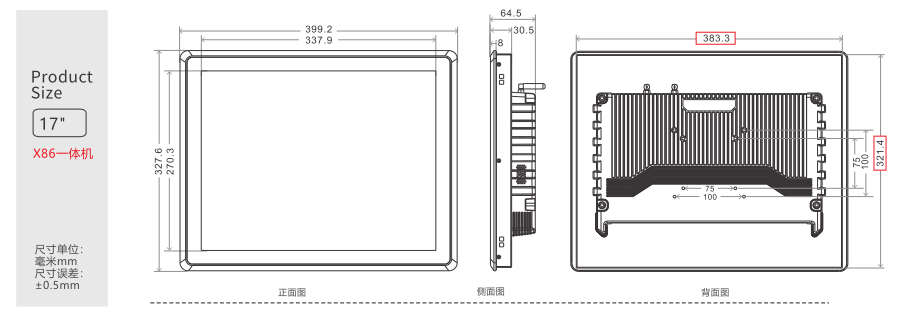 17寸工业平板电脑尺寸_工业触控平板电脑_工业用电脑长宽高_无锡。 智能科技不断发展,工业触控平板电脑一体机人机界面,即工业触摸一体机人机界面简称HMI,工业用电脑是一种智能化操作控制显示装置。工业触控平板电脑界面主要功能有:数据输入与显示;系统或设备操作状态信息显示。工业触控平板电脑以良好抗压性、快捷方便安装操作及外观占领一定的市场。通过这些标准,研维为大家推荐一款windows7/8/10,linux,Ubuntu操作系统I5处理器17寸工业三防平板电脑,32G+512G存储可升级,1T固态或500G机械盘、1T机械盘、2T机械盘;AC 100-240V 50/60Hz电源输入;DC12V / 5A电源输出;17寸工业平板电脑机身尺寸:399.2*327.6*64.5mm(长*宽*高)。