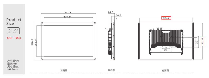 21.5寸工业平板电脑尺寸_工业电脑_工业平板电脑一体机长宽高天津。现如今工业平板电脑一体机在现代智能自动化发展中发挥很大作用,相比普通商用平板电脑,工业电脑性能方面稳定性更强,工作适应范围也更广,对于工业上效率也有很大提升。工业电脑与普通电脑相对比,使用需求肯定不相同。普通电脑平时使用都能轻易满足,而对于工业三防平板电脑一体机我们就需要在内存等问题,研维为大家推荐一款16+512G 存储21.5寸工业平板电脑,windows7/8/10,linux,Ubuntu操作系统,硬盘为1T固态或500G机械盘、1T机械盘、2T机械盘,超大内存硬盘容量满足大家使用需求。可选GPS/MIC;支持RTC实时时钟/定时开关机。21.5寸工业平板电脑含有丰富的接口,(DC 端口、USB2.0、USB3.0、RJ45 以太网、RS232、RS485、RS422等等)并能根据客户的要求进行改制;以下图片是21.5寸工业平板电脑尺寸图和研维实拍的机器图: